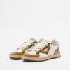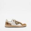White 4B12 sneakers with a distressed effect. Leather upper with tiger print details and sequined heel.
