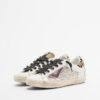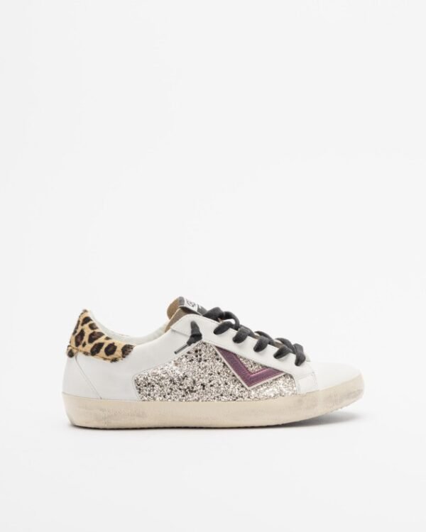White 4B12 sneakers with a worn effect. Tiger print detail on the heel and side decorated with sequins and a metallic logo.