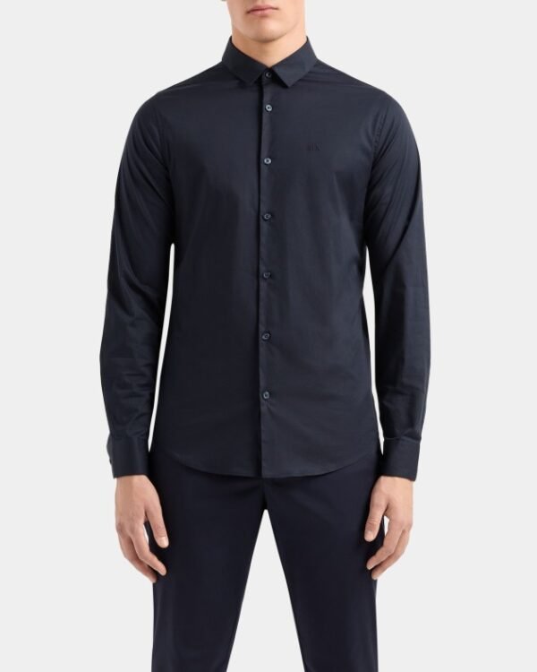 Plain navy blue shirt with A|X logo embroidered on the chest.