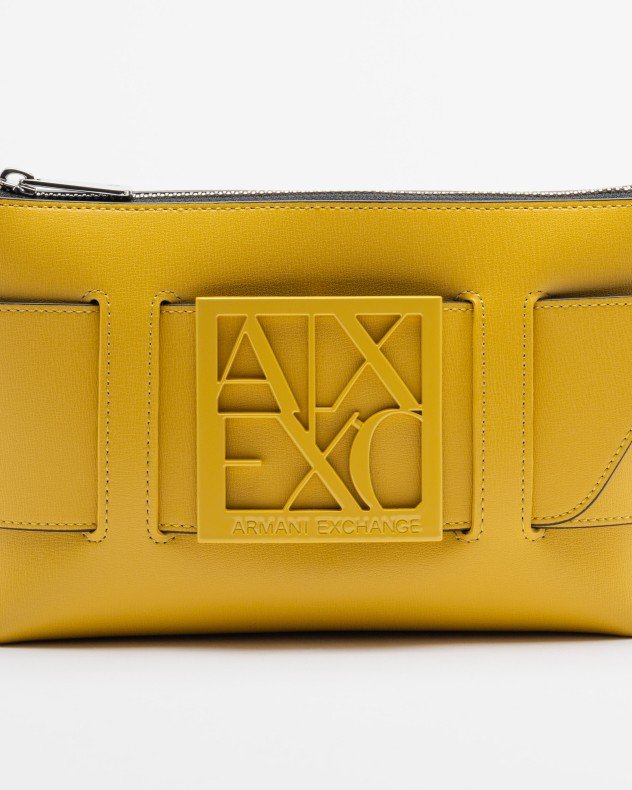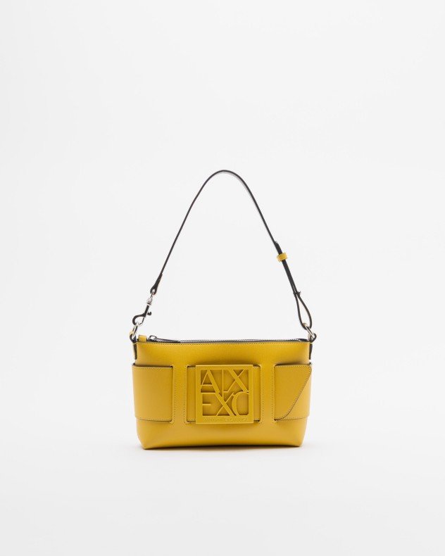 Yellow handbag with Armani Exchange metallic logo on the front. Zip fastening and removable strap.