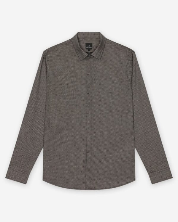 Armani Exchange blue long-sleeved shirt for men made of cotton and elastane. Monogram pattern in the same tone.