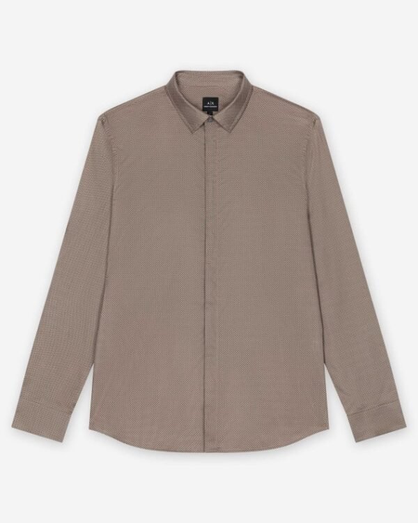 Armani Exchange men’s taupe long-sleeved shirt made of cotton and elastane. Monogram pattern in the same tone.