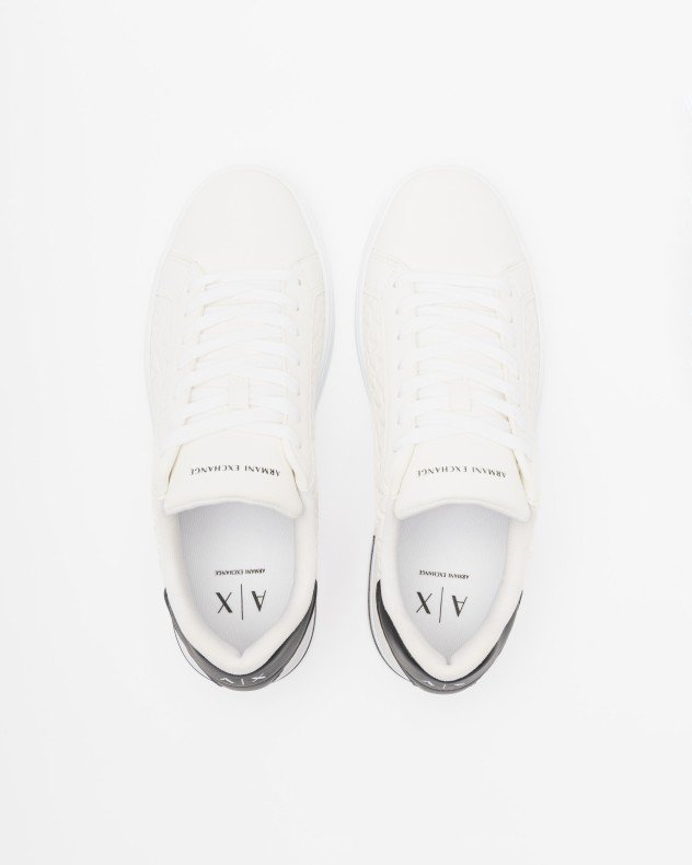 Black sneakers in synthetic leather with texture and AX logo pattern.
