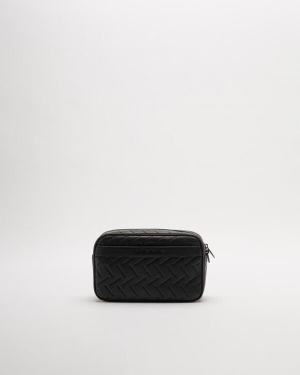 Armani Exchange toiletry bag in synthetic leather with embossed A|X pattern.