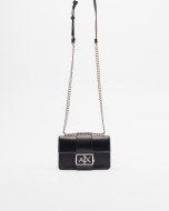 Black Armani Exchange crossbody bag with metallic logo detail on the front.