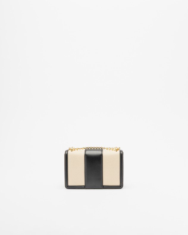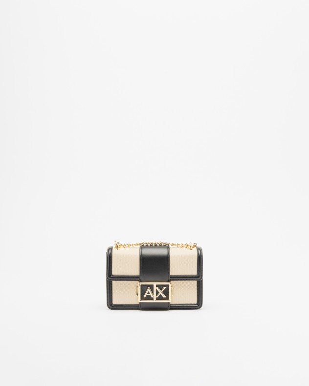 Armani Exchange crossbody bag in camel canvas and synthetic leather with gold Armani Exchange metal plaque.