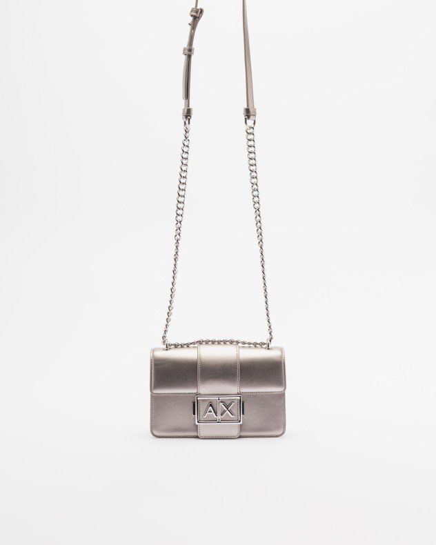 Metallic Armani Exchange shoulder bag with metallic logo detail on the front.