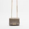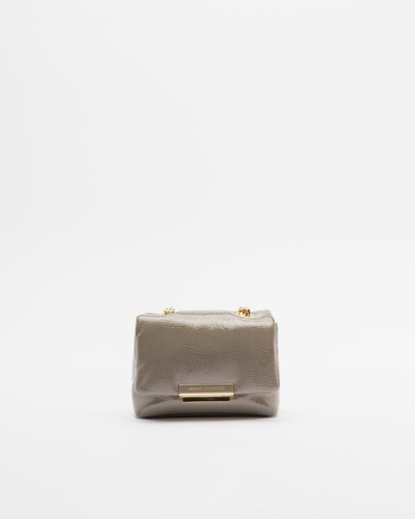 Taupe Armani Exchange shoulder bag in faux leather with a quilted effect. Chain strap and metal plate detail with the brand’s logo.