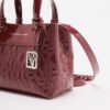 Red Armani Exchange tote bag in synthetic leather with embossed Armani Exchange monogram pattern.