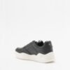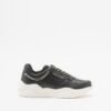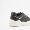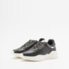 Black Armani Exchange sneakers in coated leather with A|X branding details on the sides and heel. Gold chain detail with pendant.