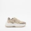 Beige sneakers with a chunky, chunky sole, crafted with a mix of materials. Armani Exchange brand details