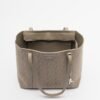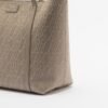 Taupe Armani Exchange bag with velvet monogram pattern. Constructed from faux leather with front patch and metal pendant.