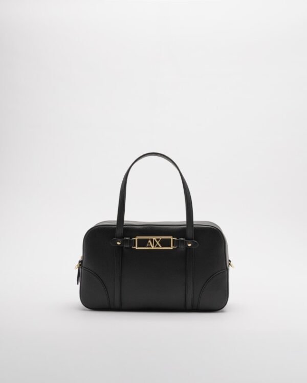 Armani Exchange black doctor bag in synthetic leather with a grained effect and gold details.