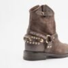 Brown ankle boots in nubuck leather with gold details, Texan-style stitching on the front and exclusive AS98 coordinates print.