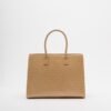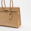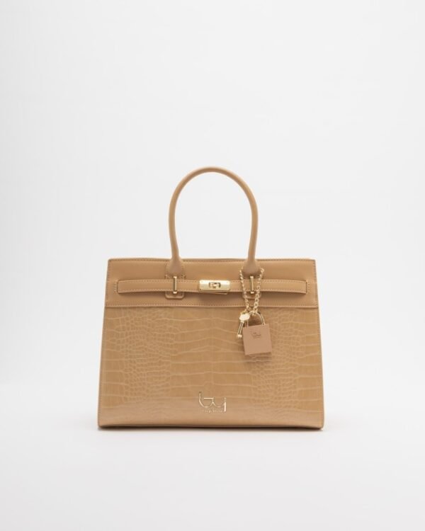 Large beige By Byblos handbag made of crocodile-effect faux leather. Featuring a Byblos pendant and gold accents.