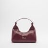 By Byblos burgundy shoulder bag in a baguette style, crafted from smooth synthetic leather with a crocodile effect. Features the By Byblos logo on the exterior.