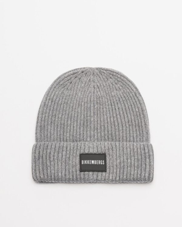Grey Bikkembergs beanie with Bikkembergs logo patch.