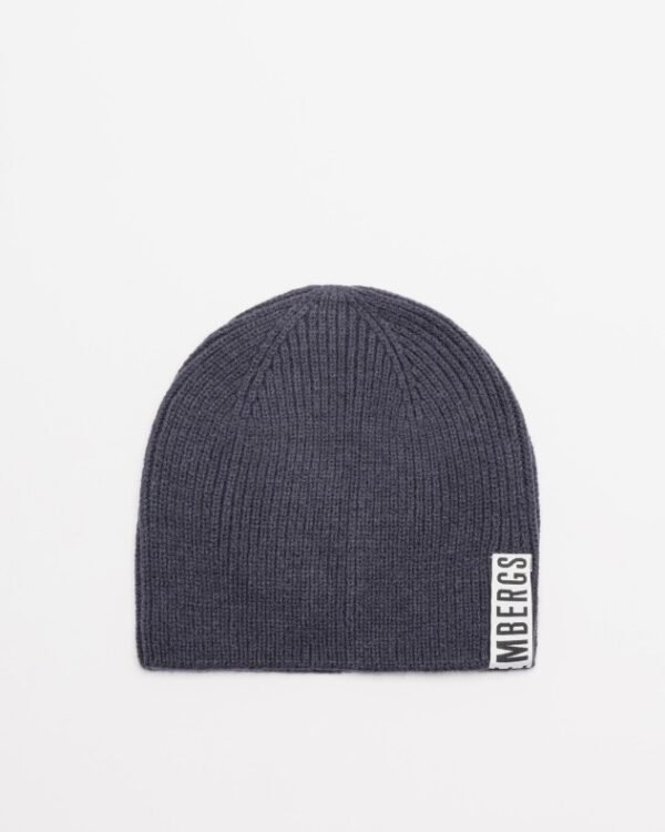 Blue Bikkembergs beanie with contrasting stripe branding.
