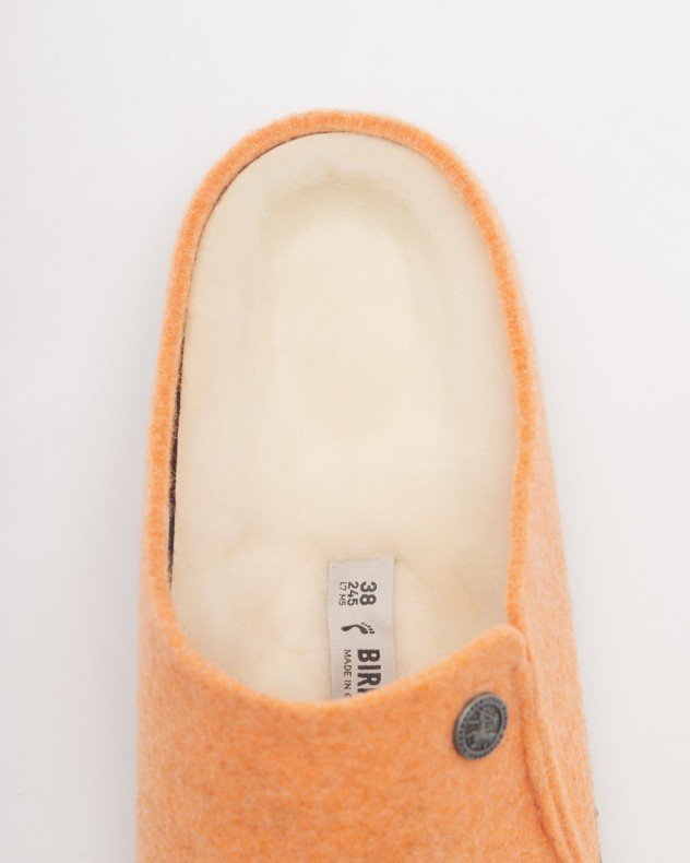 Enjoy ultimate comfort with these Birkenstock slippers. With a removable insole, you can customize the fit to your liking. The shearling lining provides a cozy feel, while the soft wool felt upper creates a soft, welcoming texture. These slippers are ideal for relaxing at home or pampering your feet after a long day.