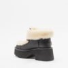 UGG platform boots in soft leather with a sheepskin strap detail and embossed UGG logo on the back.