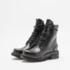 Black leather boots with combined sole. Attacker closure and zipper detail in front.