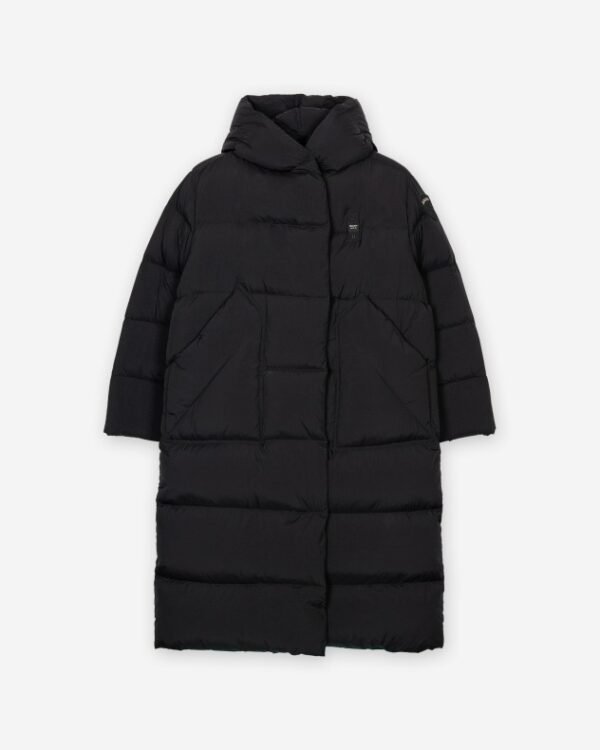 Black padded jacket with hood. Chest tab with logo and exclusive BLAUER crest embroidered on the left sleeve.