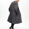 Dark blue knit blazer with rhinestone detailing on the shoulders. Double-breasted design with classic lapels.