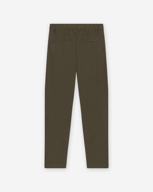 Green nylon trousers with belt loops. Four-pocket design with adjustable elasticated waistband. BOB metallic detail on the front.