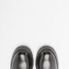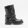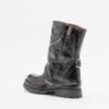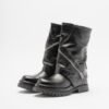 A.S. 98 boots in black leather with gold buckle detail behind and decorative diagonal zipper.