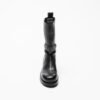 Exterior: Genuine black leather with elastic fabric on both sides and removable metal application. Interior: Insole and lining in genuine leather. Sole: Rubber (4 cm behind and 2.5 cm in front). Pipe height: 25 cm. Additional details: All