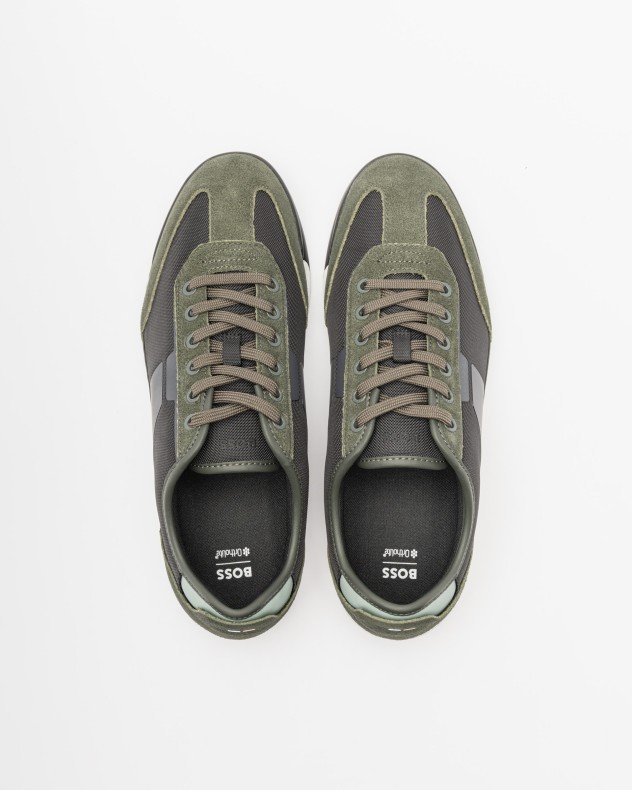 Green mesh trainers with a low sole and suede effect details. BOSS logo printed on the side and exclusive embroidered detail on the heel.