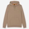 BOSS Menswear taupe hoodie with logo patch on the chest, made from soft fabric.