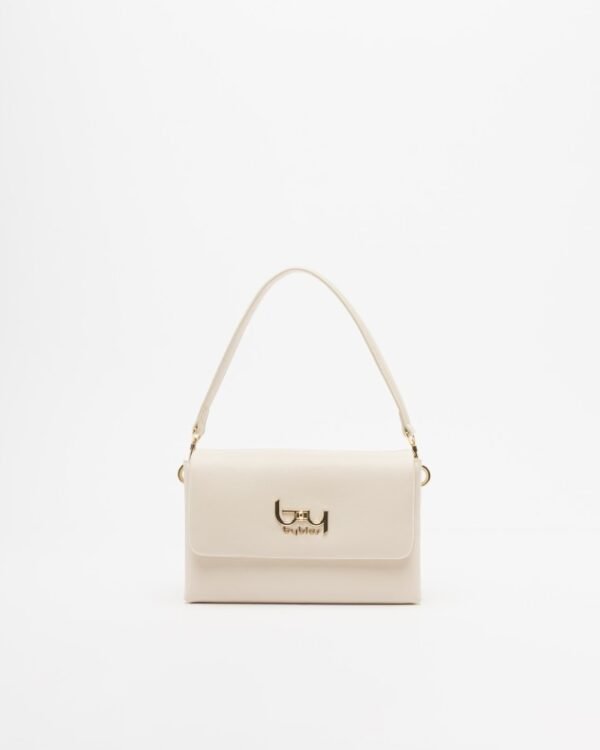 By Byblos beige medium shoulder bag with metallic plate with the By Byblos logo.