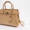 Medium-sized beige By Byblos handbag made of synthetic leather with a crocodile effect. Features a By Byblos pendant detail and gold accents.