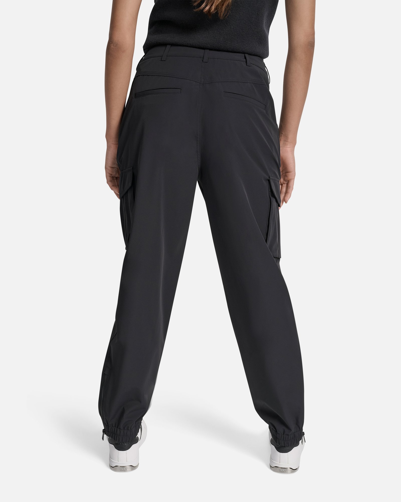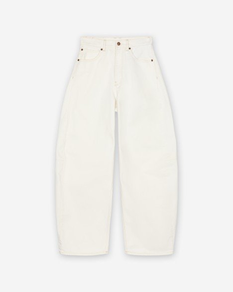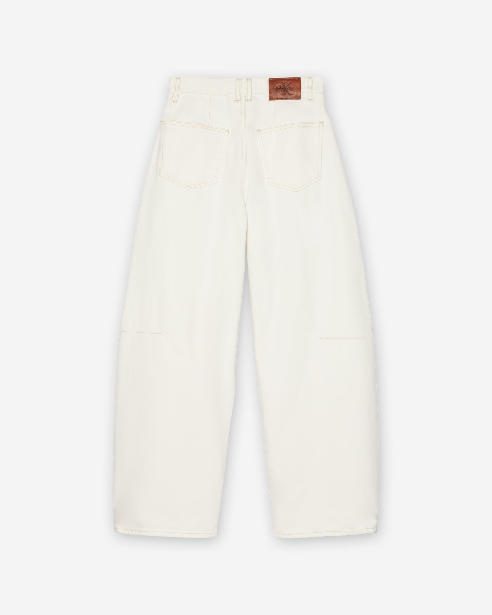 White high-waisted trousers by Calvin Klein Jeans. Rounded leg (wider in the middle and tapered at the ankles).