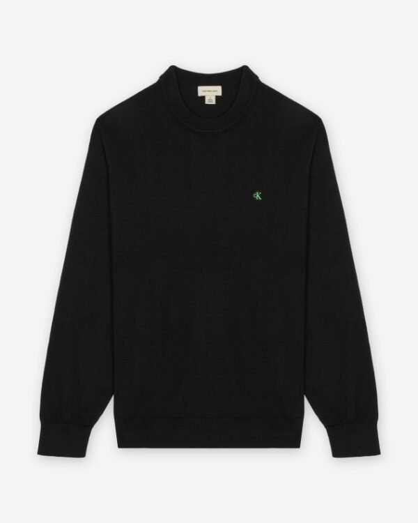 Calvin Klein Jeans men’s black sweatshirt in soft cotton with contrasting embroidered Ck logo detail.