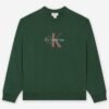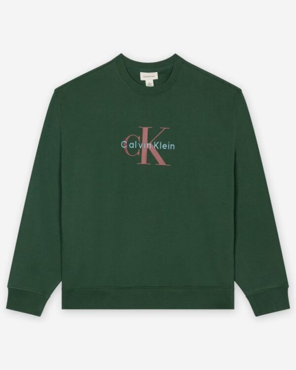 Green Calvin Klein Jeans sweatshirt for men with printed CK detail and embroidered brand lettering.