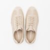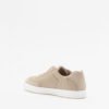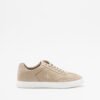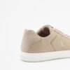 Beige women’s sneakers in a faux leather blend with a distressed effect and suede details. Calvin Klein branding embossed on the side and tongue.