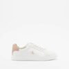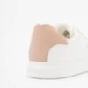 Low-top sneakers in white leather with pink details. CK logo printed on the side.