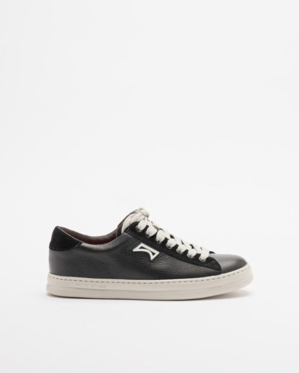 Low-top sneakers in black leather with suede details. Contrasting Camper logo on the side.