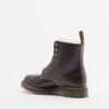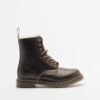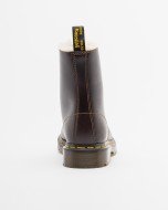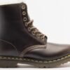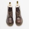 Brown boots Dr. Martens developed in leather with subtle granulation and synthetic fur lining.