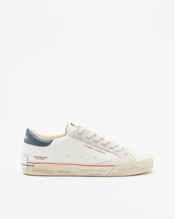 Low sneakers in white leather with a worn design. Suede overlays, contrasting details and Crime logo on the side.