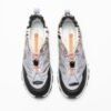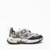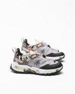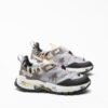 Exterior: Technical grey and beige fabric, by the synthetic animal standard, details in black synthetic leather and gray suede. Interior: Insole and leather lining. Sole: Vibram® Rubber (4.5 cm behind and 3.5 cm in front). Additional