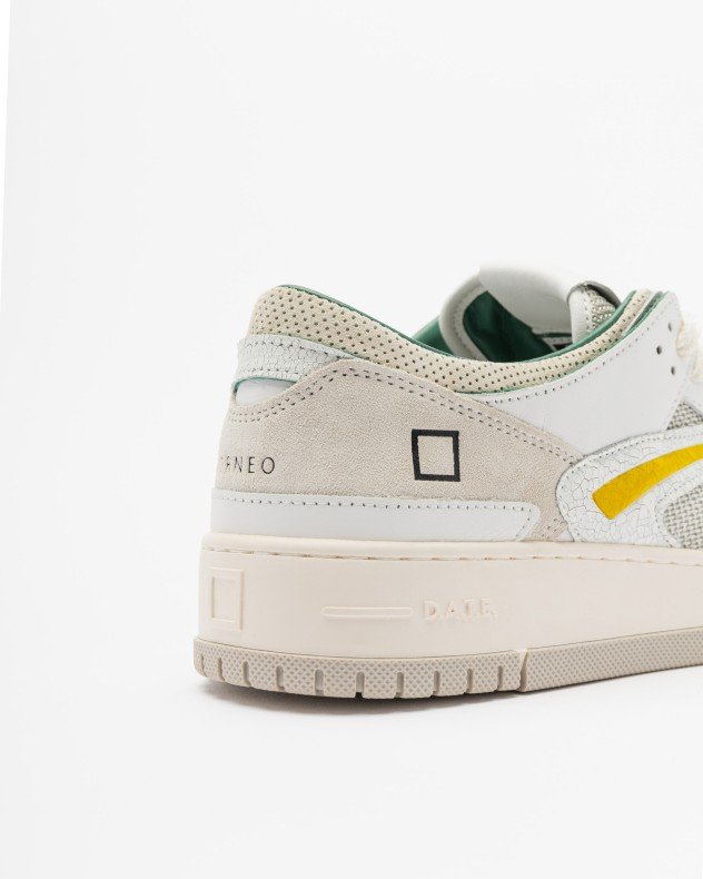 Italian minimalism at its purest. The D.A.T.E. Torneo balances grained white leather precision with perforated suede detailing — a refined everyday sneaker that never compromises on character.