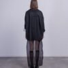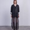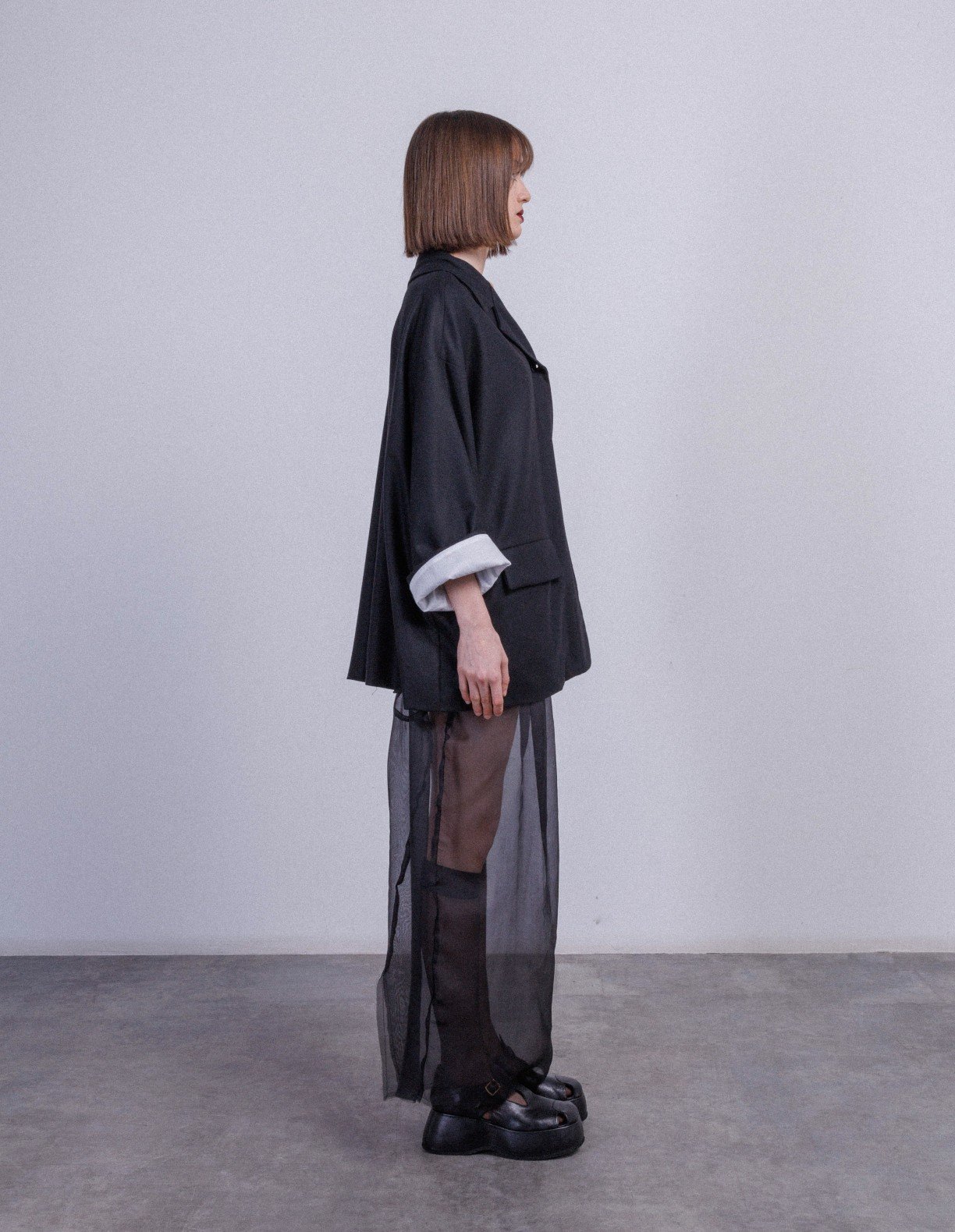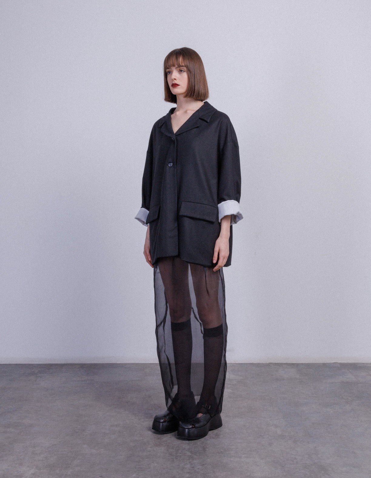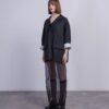 Black 100% cotton jacket with lapels, contrasting lining and two-button fastening.