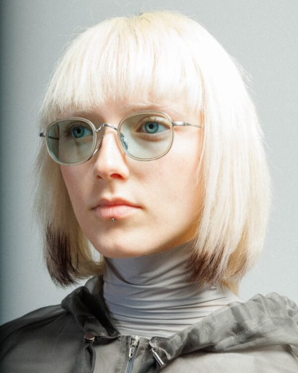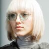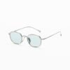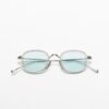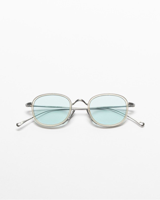 Lightweight, round District People glasses. Blue lenses and silver temples.