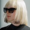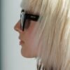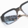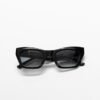 Black sunglasses with a sturdy frame and District People logo on the temple.