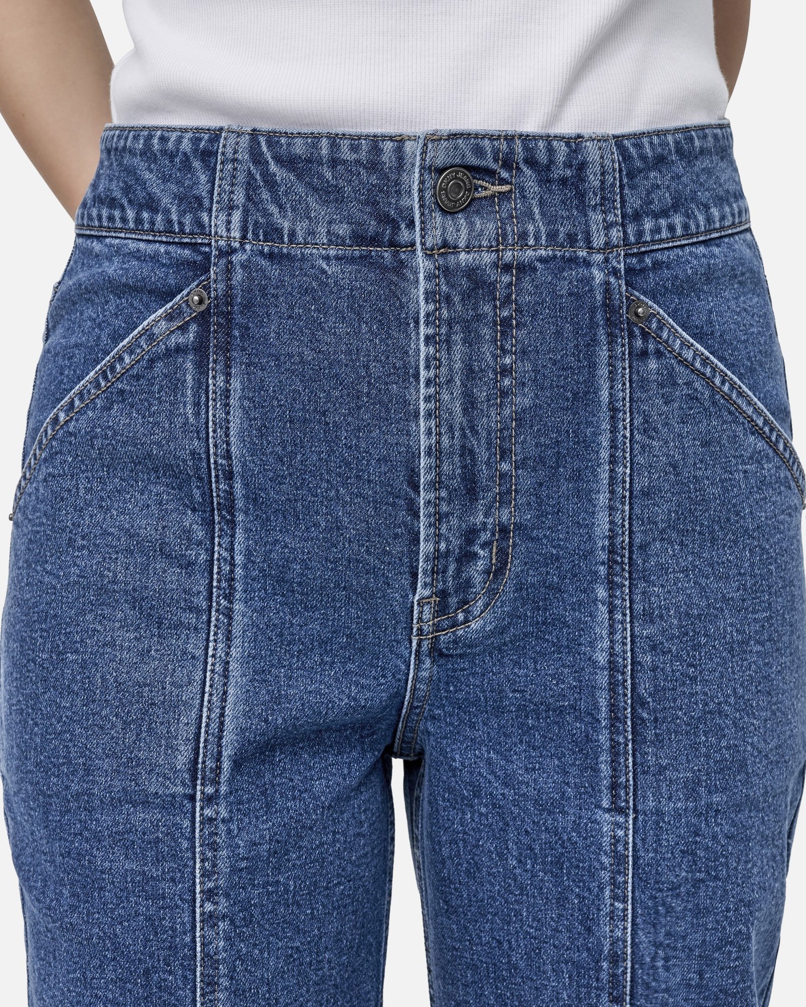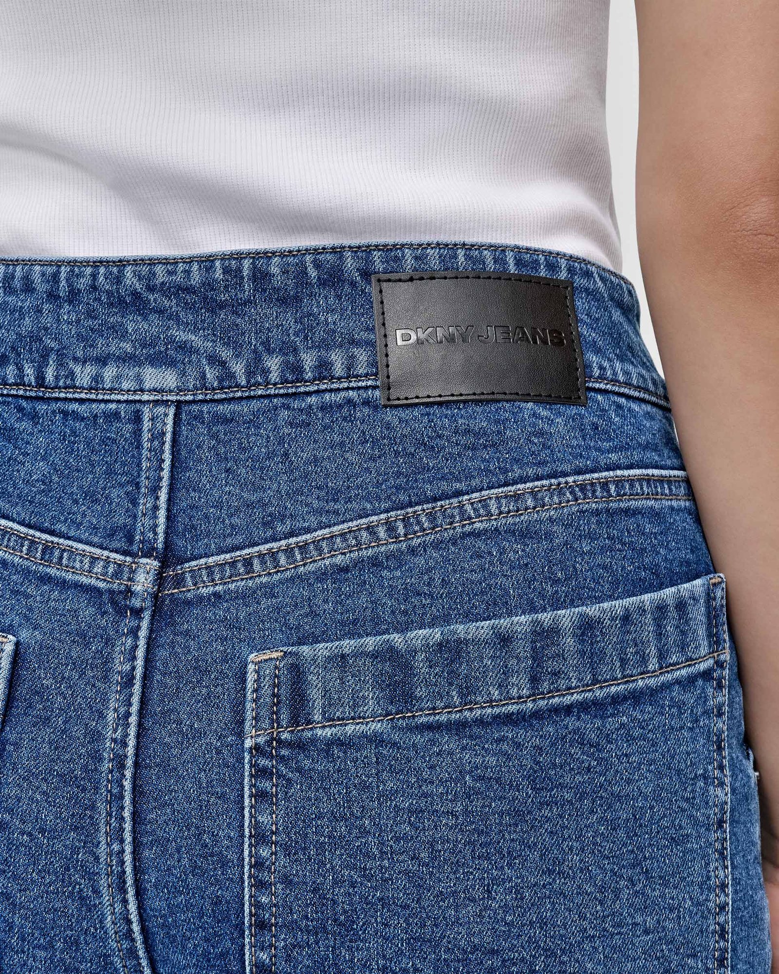 DKNY jeans with a four-pocket design. Seamless hem and vertical seams down the legs.