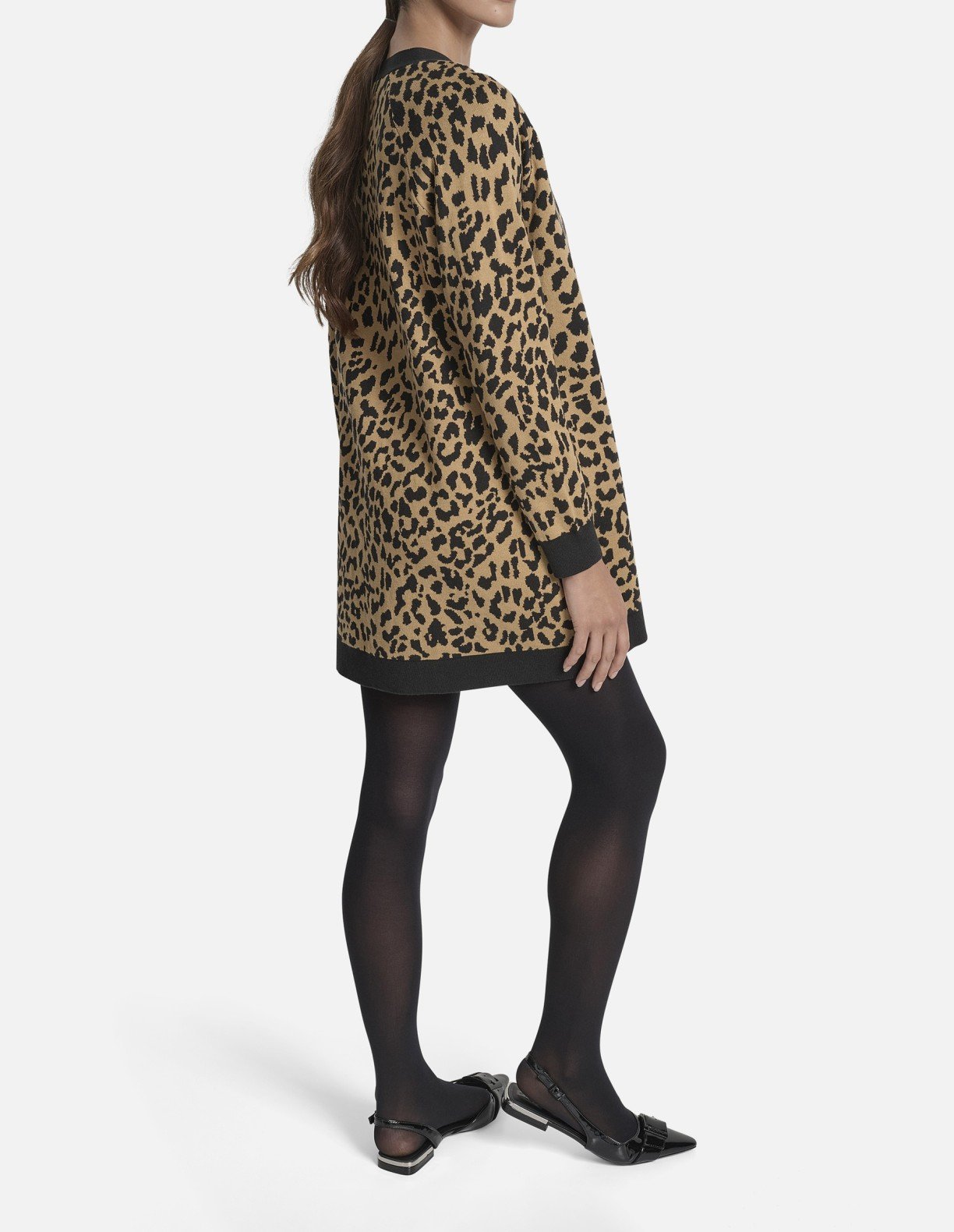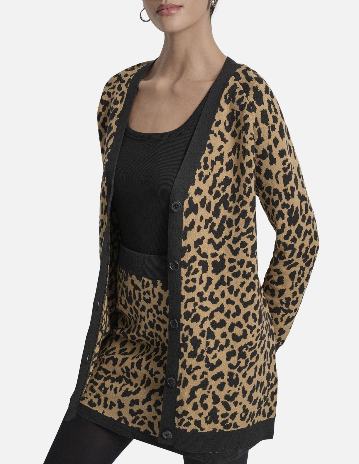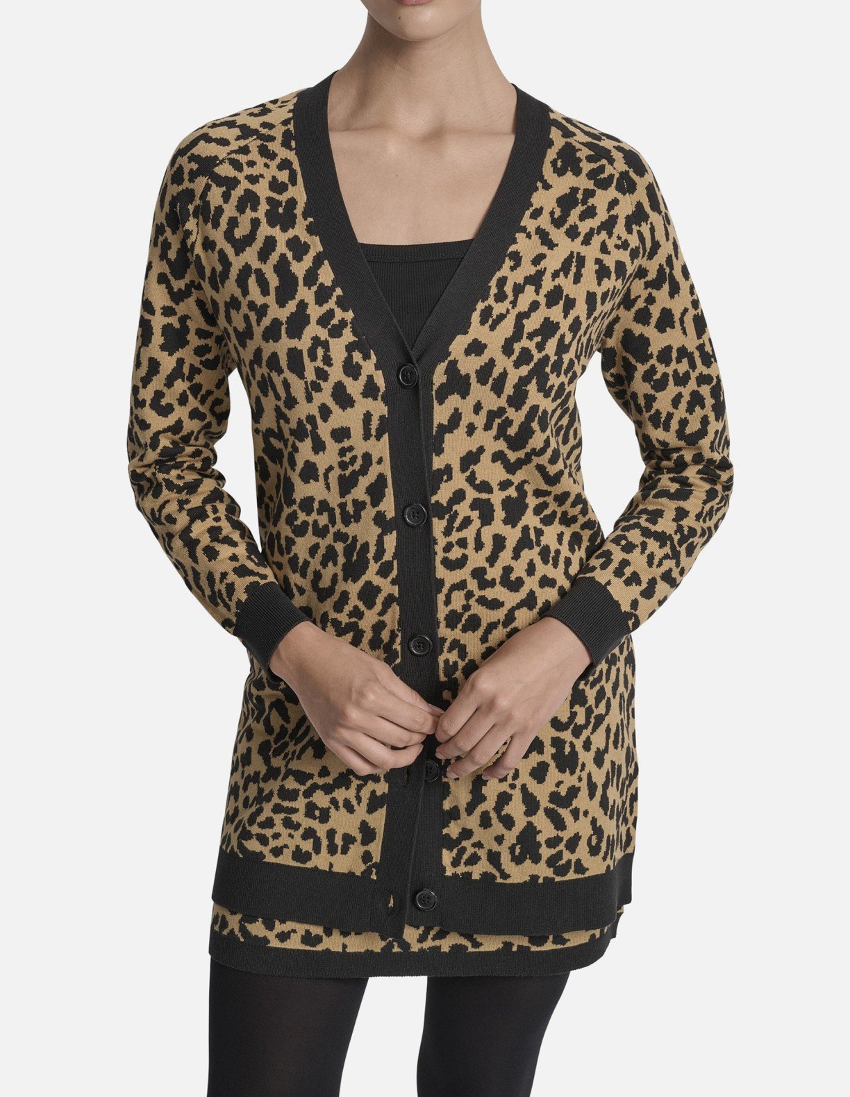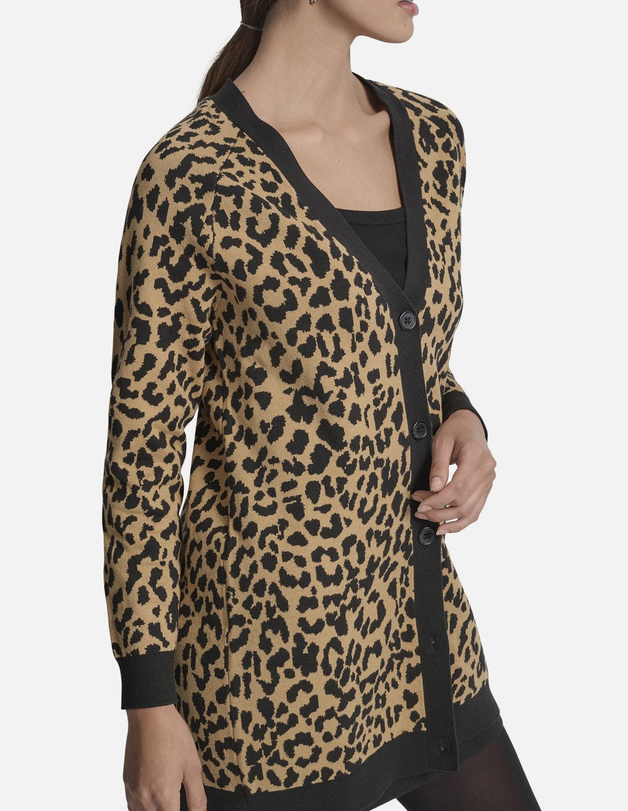 DKNY Jeans knitted jacket with tigress pattern, V-neck and ribbed hems.