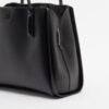 Black faux leather bag with DKNY logo on the front. Double shoulder strap and central zip pocket.